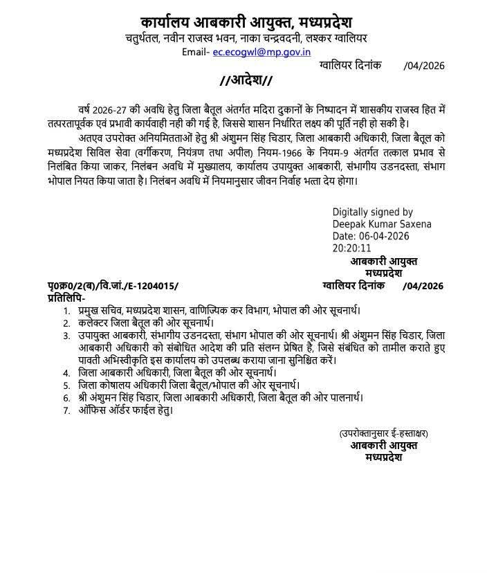 बैतूल और अशोकनगर जिले के आबकारी अधिकारी निलंबित